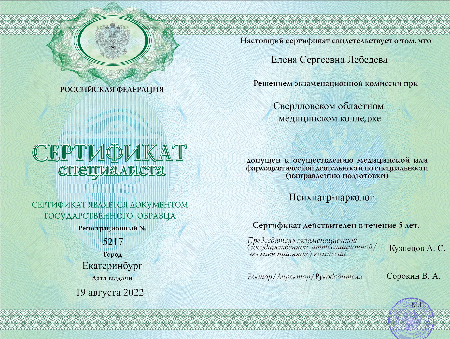 Елена Сергеевна Лебедева врач нарколог клиники доктора Стукаловой в Курганинске